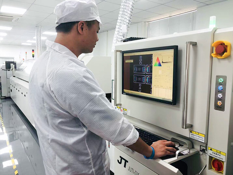車間爐前設立QC進行不良篩選,爐后 PCBA目檢,PCBA進行光學檢測,人工再抽檢70%,13溫區回流焊每款產品獨立設置溫度。